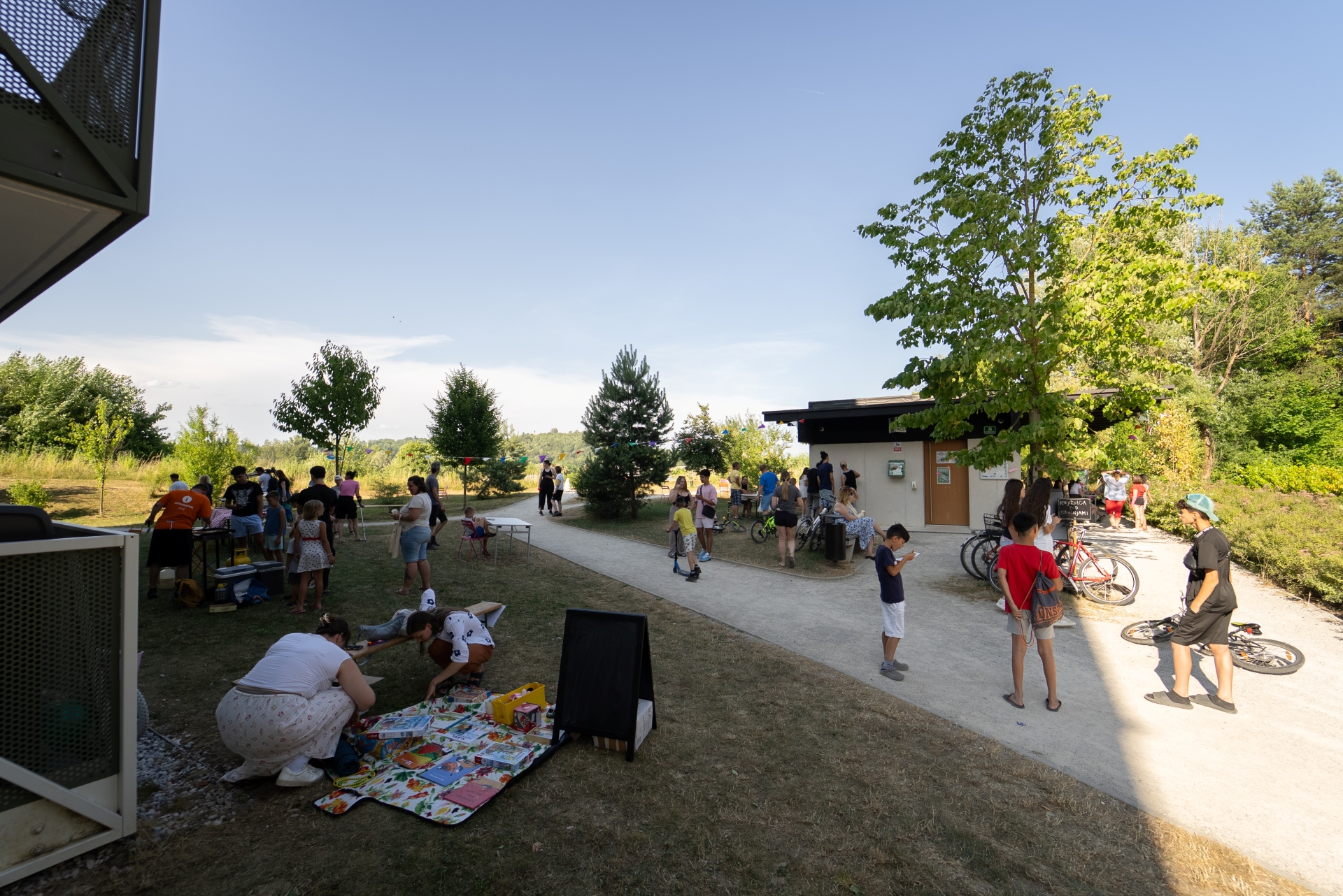 Da bi spodbudili grajenje skupnosti so v skupnostnem paviljonu izvajali številne aktivnosti s skupnostjo. Redno so organizirali medsosedska srečanja in na podlagi izraženih potreb organizirali različne dogodke in aktivnosti. Odvijale so se različne aktivnosti, od vadbe joge, preko pustnega rajanja z otroci, pa do koncertov klasične glasbe. Vzpostavila se je tudi knjižnica na prostem imenovana Knjižnica pod krošnjami. V skupnostnem prostoru so skupaj s stanovalci postavili tudi manjšo kuhinjo. Za boljše povezovanje in informiranje stanovalcev so vzpostavili tudi spletno stran novobrdo.si, ki stanovalcem olajša komunikacijo in dostop do informacij.